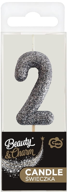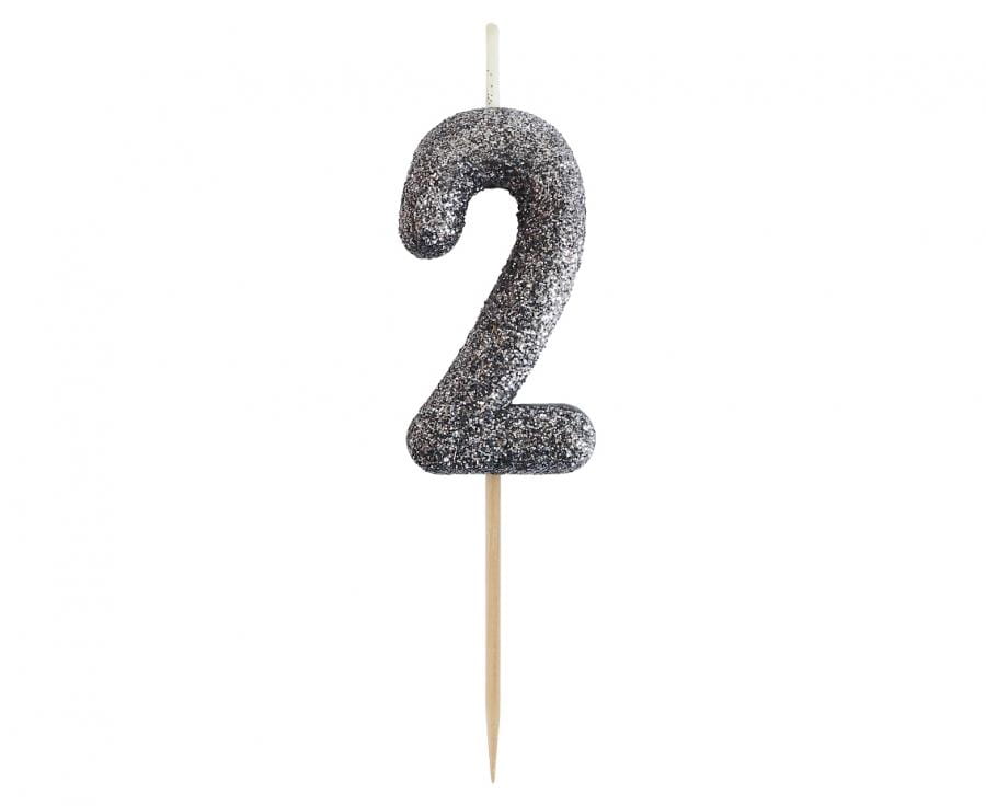 Świeczka urodzinowa Cyfra 2 brokatowa czarna Piker, Godan