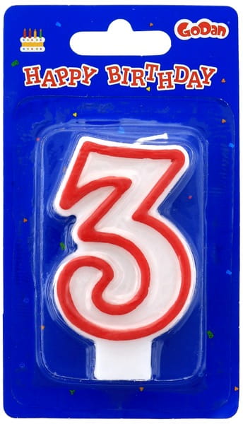 Świeczka urodzinowa Cyfra 3 czerwony kontur, GoDan