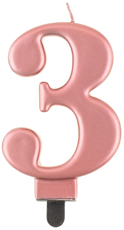 Świeczka urodzinowa Cyfra 3 metalik różowo-złota, GoDan