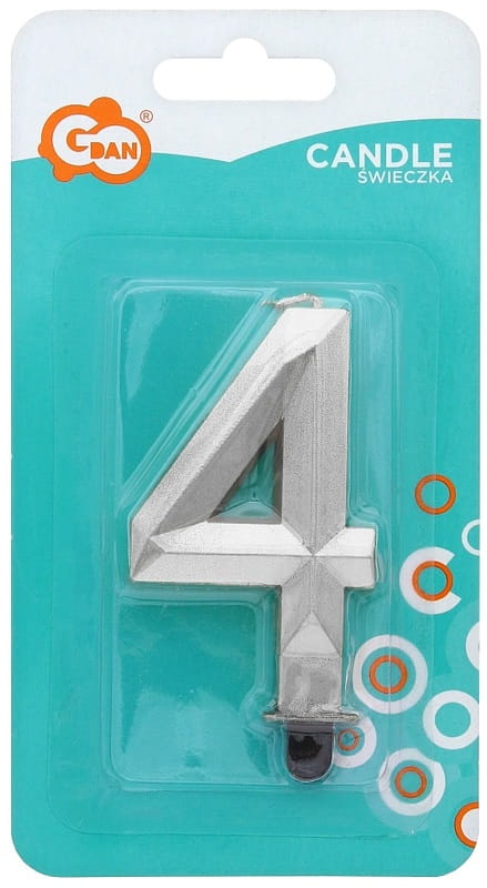 Świeczka urodzinowa Cyfra 4 Diament metalik srebrny, GoDan