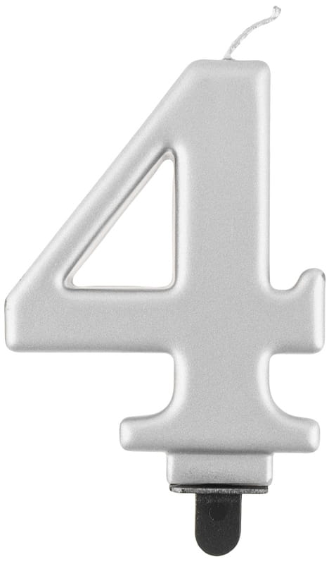 Świeczka urodzinowa Cyfra 4 metalik srebrna, GoDan