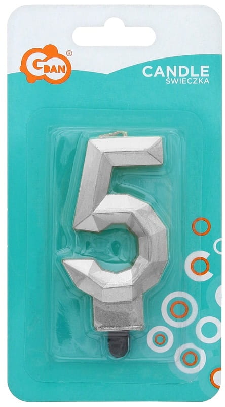 Świeczka urodzinowa Cyfra 5 Diament metalik srebrny, GoDan