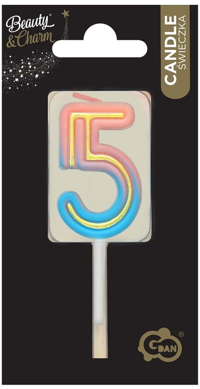 Świeczka urodzinowa Cyfra 5 Neon B&C, Godan