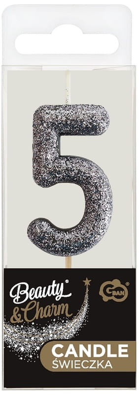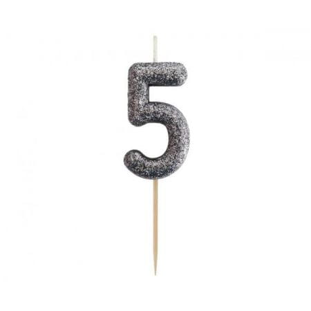 Świeczka urodzinowa Cyfra 5 brokatowa czarna Piker, Godan