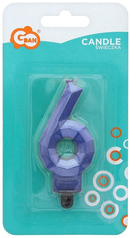 Świeczka urodzinowa Cyfra 6 Diament metalik niebieski, GoDan