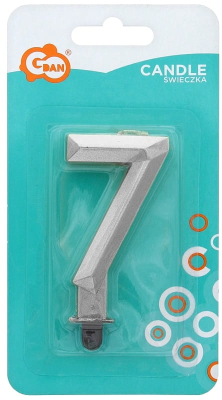 Świeczka urodzinowa Cyfra 7 Diament metalik srebrny, GoDan