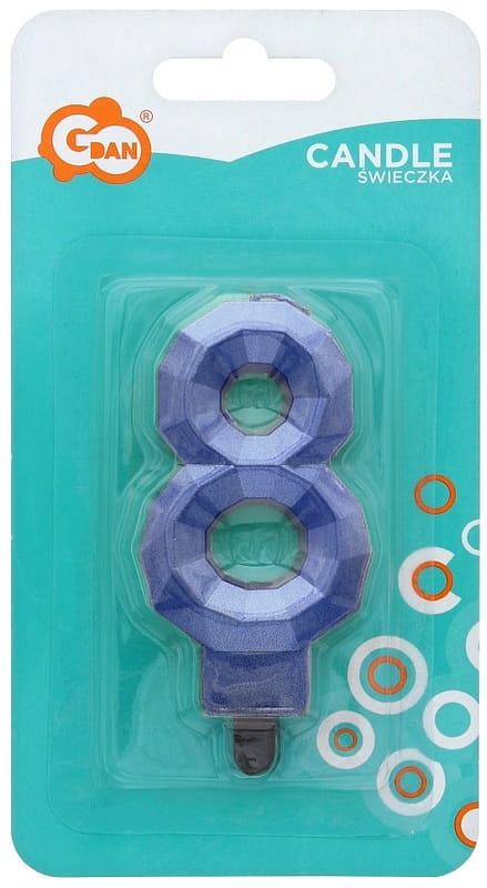 Świeczka urodzinowa Cyfra 8 Diament metalik niebieski, GoDan