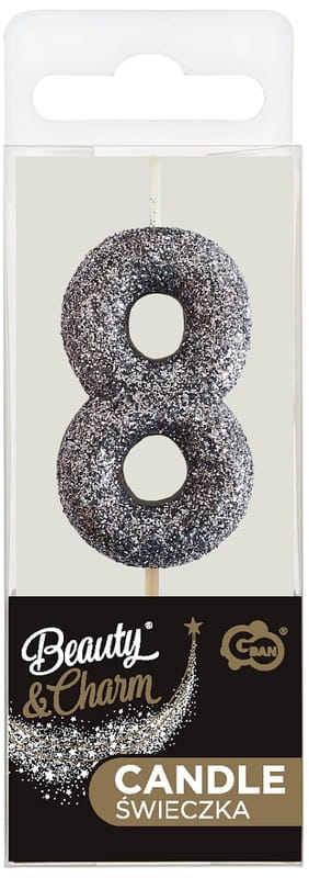 Świeczka urodzinowa Cyfra 8 brokatowa czarna Piker, Godan