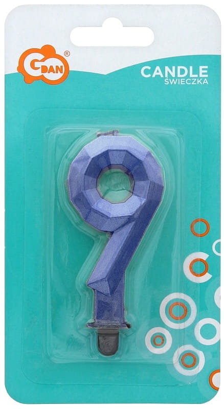 Świeczka urodzinowa Cyfra 9 Diament metalik niebieski, GoDan