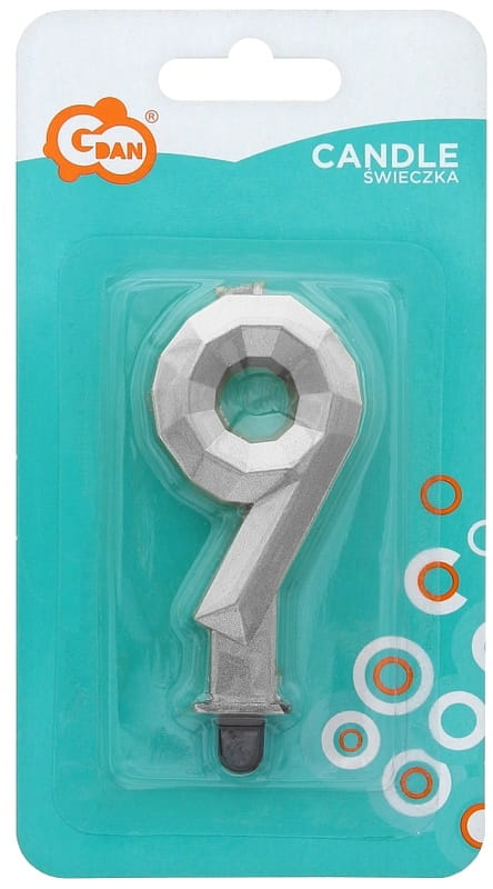 Świeczka urodzinowa Cyfra 9 Diament metalik srebrny, GoDan