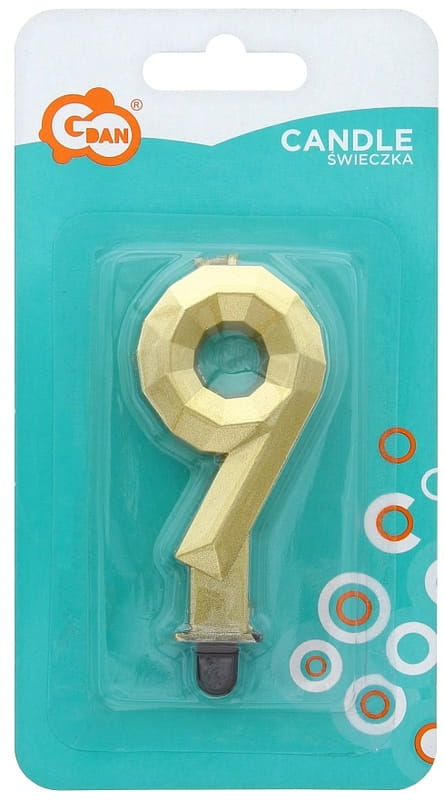 Świeczka urodzinowa Cyfra 9 Diament metalik złoty, GoDan