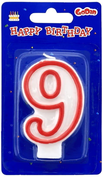 Świeczka urodzinowa Cyfra 9 czerwony kontur, GoDan