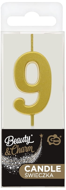 Świeczka urodzinowa Cyfra 9 metaliczna złota Piker, Godan
