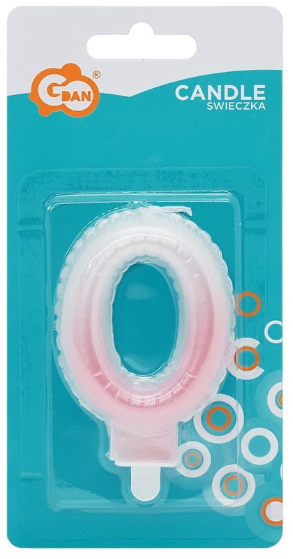 Świeczka urodzinowa cyferka 0 ombre biało-różowe 7 cm, GoDan