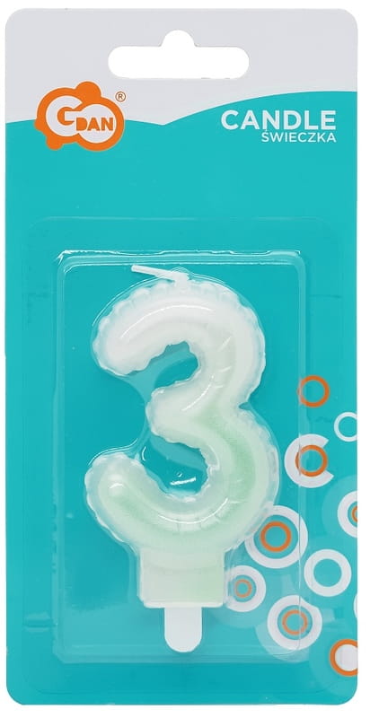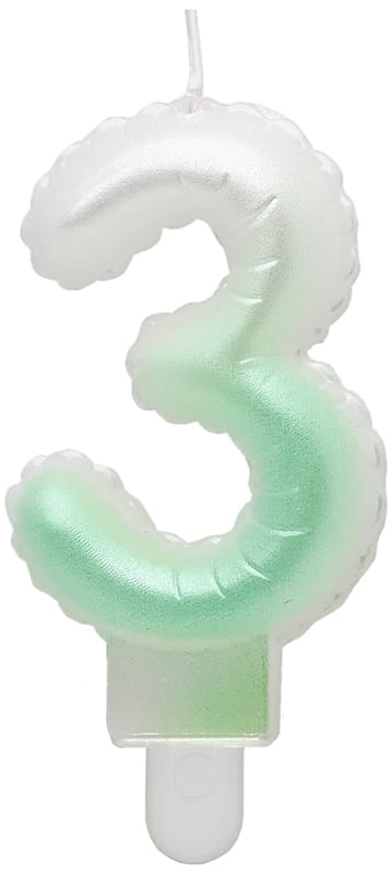 Świeczka urodzinowa cyferka 3 ombre perłowa biało-zielona 7 cm, GoDan