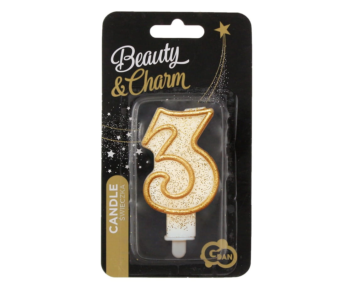 Świeczka urodzinowa cyferka 3 ze złotym konturem Godan