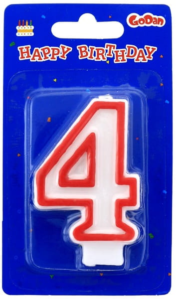 Świeczka urodzinowa cyferka 4 z czerwonym konturem, GoDan