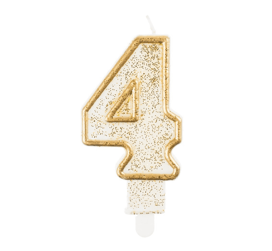 Świeczka urodzinowa cyferka 4 ze złotym konturem Godan