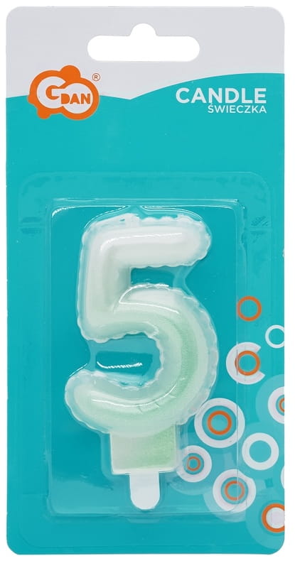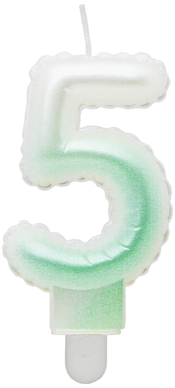 Świeczka urodzinowa cyferka 5 ombre perłowa biało-zielona 7 cm, GoDan