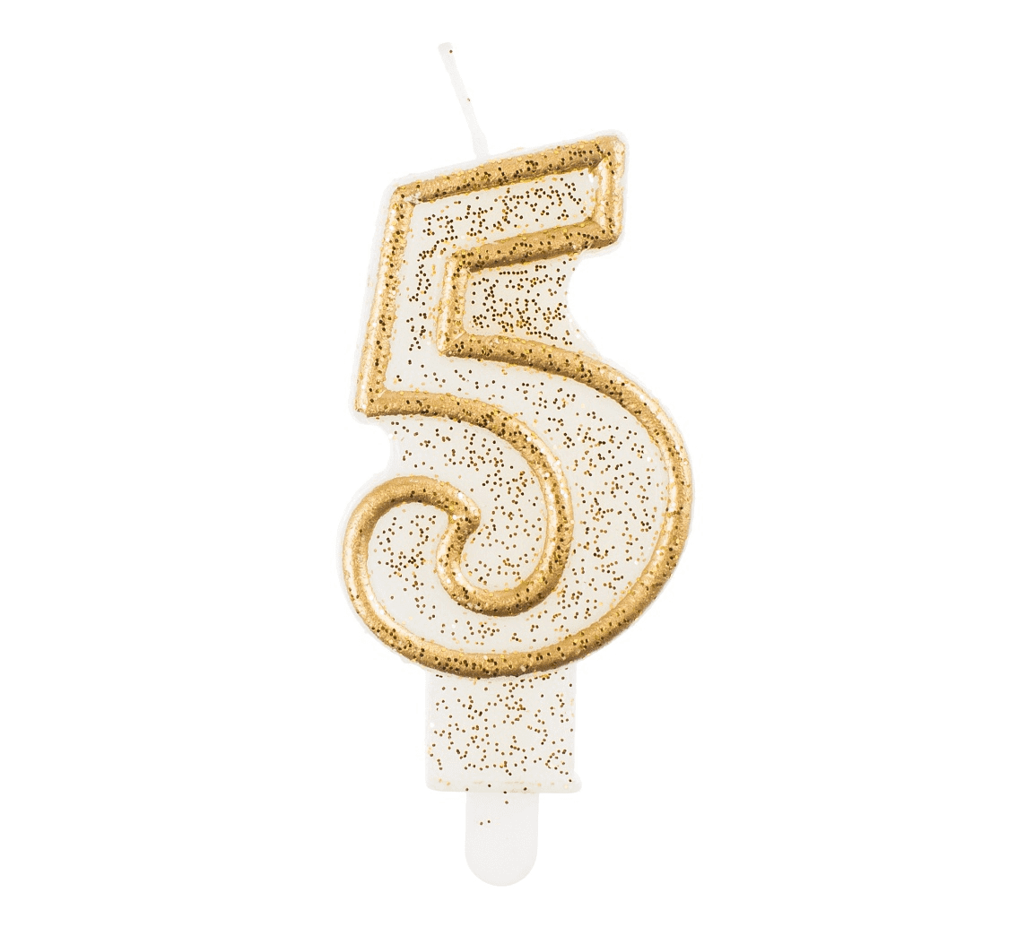 Świeczka urodzinowa cyferka 5 ze złotym konturem Godan