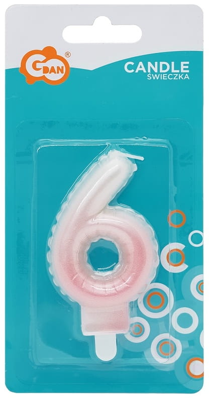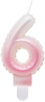 Świeczka urodzinowa cyferka 6 ombre perłowa biało-różowa 7 cm, GoDan