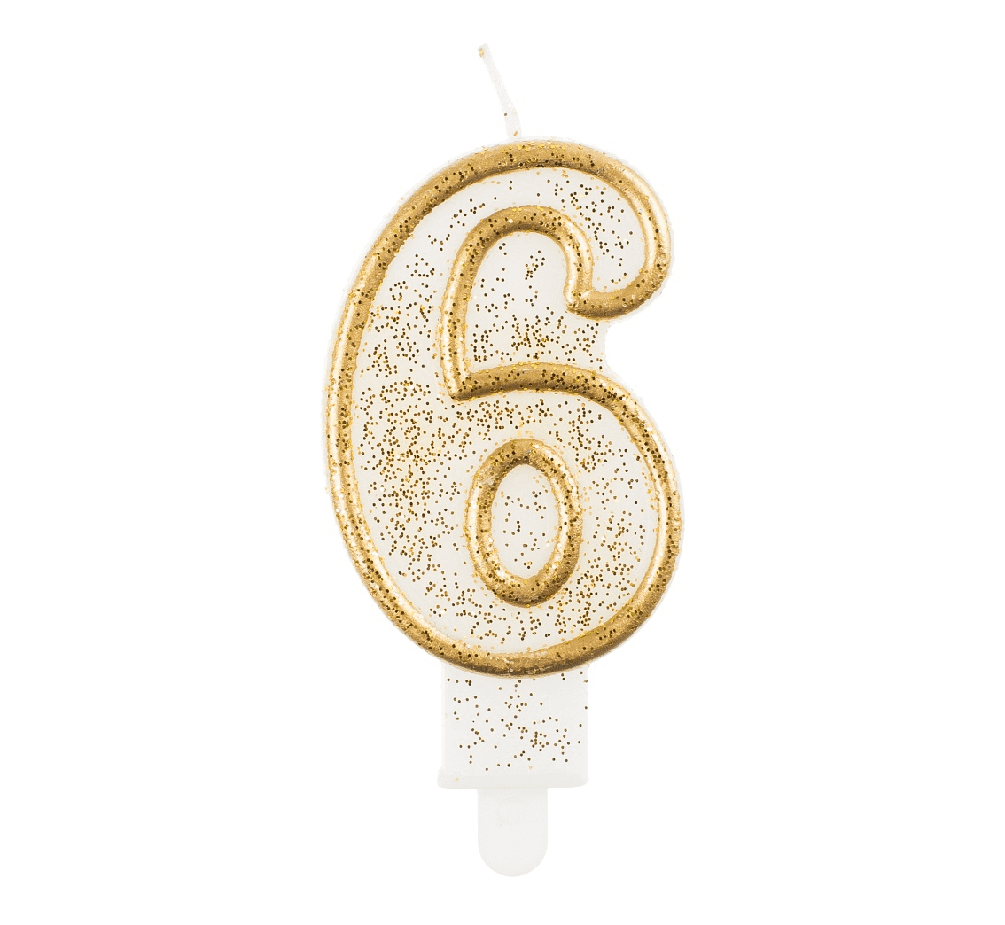 Świeczka urodzinowa cyferka 6 ze złotym konturem Godan