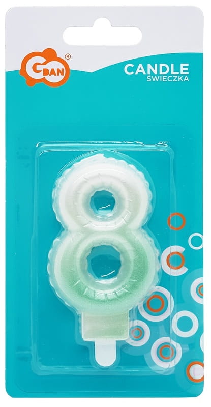 Świeczka urodzinowa cyferka 8 ombre biało-zielone 7 cm, GoDan