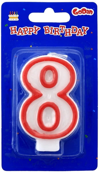 Świeczka urodzinowa cyferka 8 z czerwonym konturem, GoDan