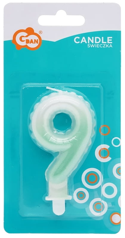 Świeczka urodzinowa cyferka 9 ombre biało-zielone 7 cm, GoDan