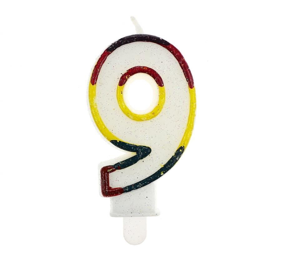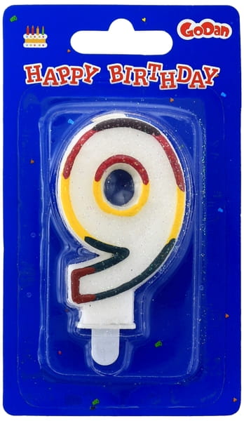 Świeczka urodzinowa cyferka 9 z brokatem, GoDan