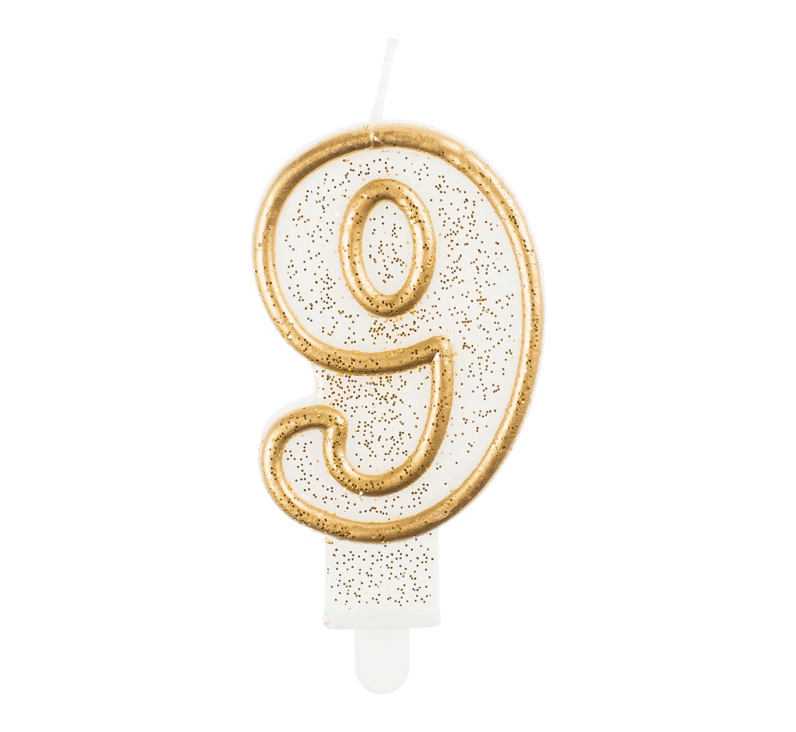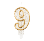 Świeczka urodzinowa cyferka 9 ze złotym konturem Godan