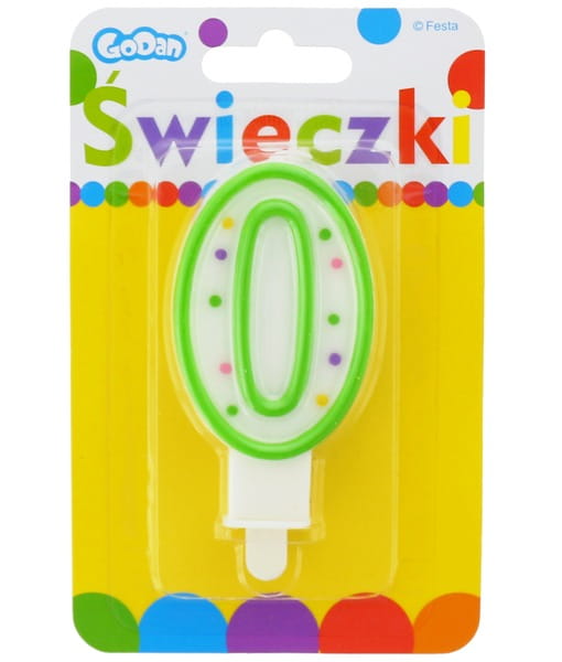 Świeczka urodzinowa cyfra 0 z kropeczkami, Godan