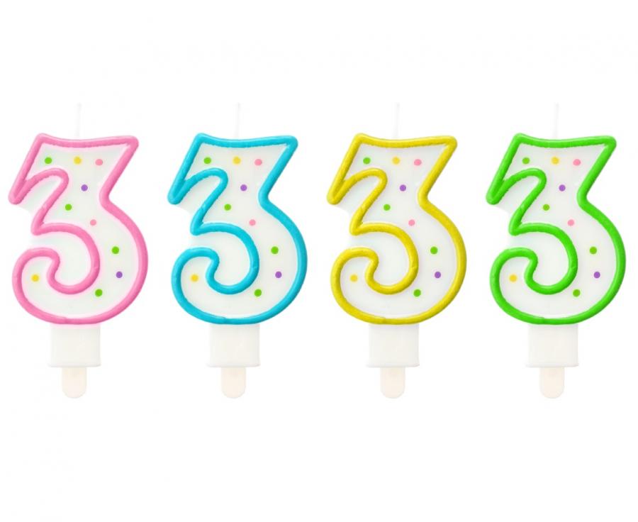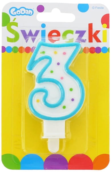 Świeczka urodzinowa cyfra 3 z kropeczkami, Godan