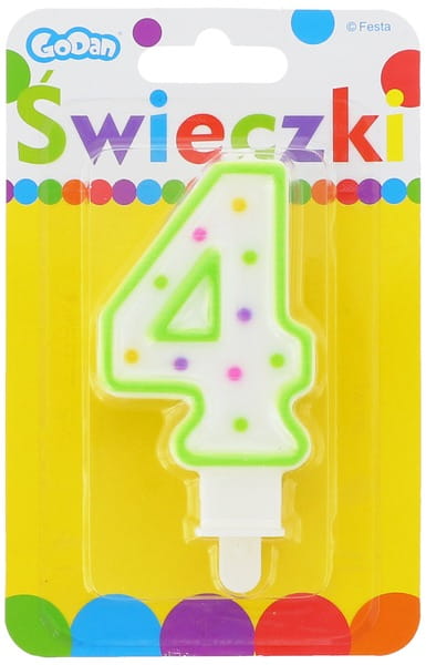 Świeczka urodzinowa cyfra 4 z kropeczkami, Godan