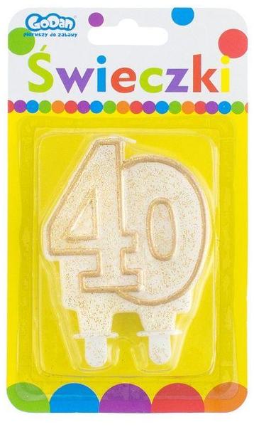 Świeczka urodzinowa cyfra 40 złoty kontur, GoDan