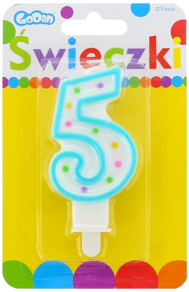 Świeczka urodzinowa cyfra 5 z kropeczkami, Godan