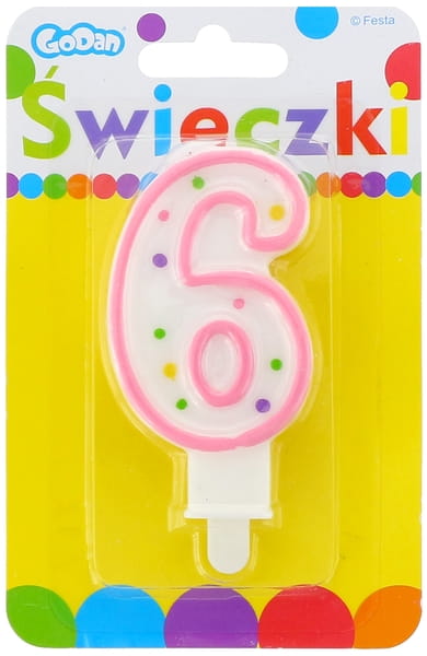 Świeczka urodzinowa cyfra 6 z kropeczkami, Godan