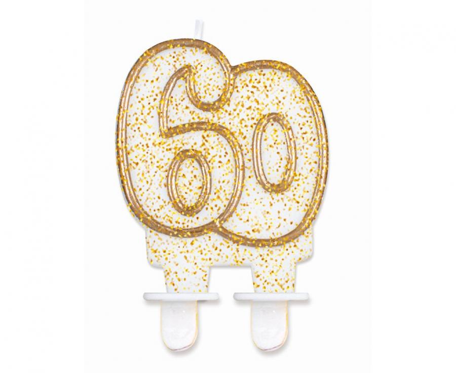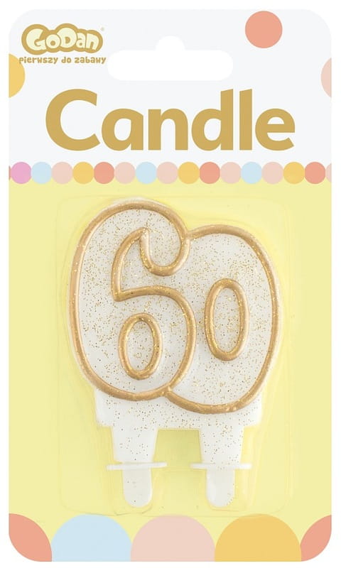 Świeczka urodzinowa cyfra 60 złoty kontur, GoDan
