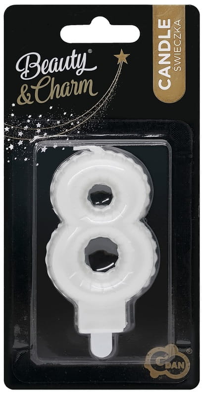 Świeczka urodzinowa cyfra 8 perłowa biała 7 cm, GoDan