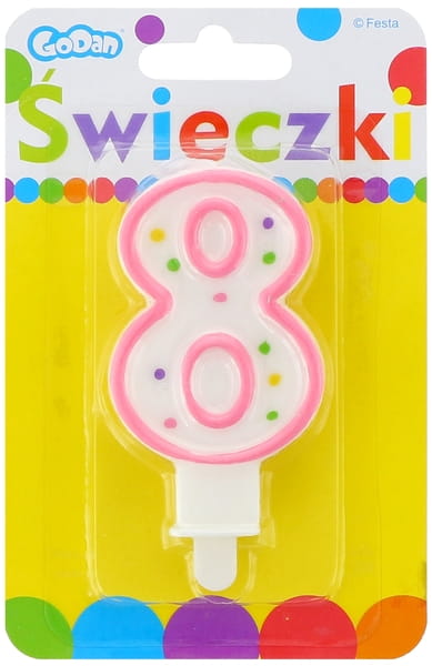Świeczka urodzinowa cyfra 8 z kropeczkami, Godan