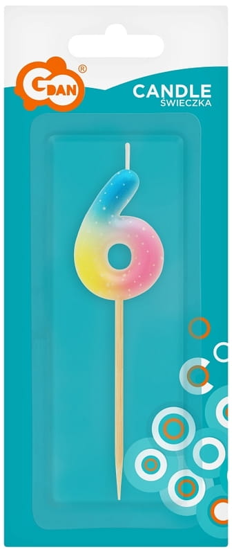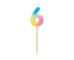 Świeczka urodzinowa piker cyferka 6 ombre pastelowa, Godan