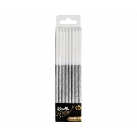 URODZINOWE ŚWIECZKI NA TORT ZE SREBRNYM BROKATEM