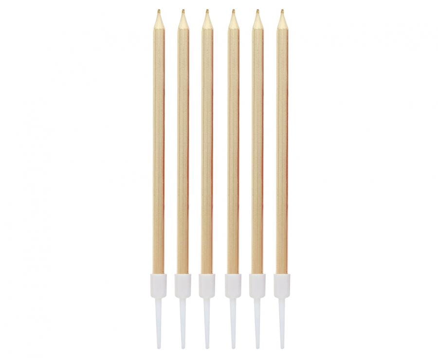 ŚWIECZKI METALICZNE JASNOZŁOTE, 6 SZT.