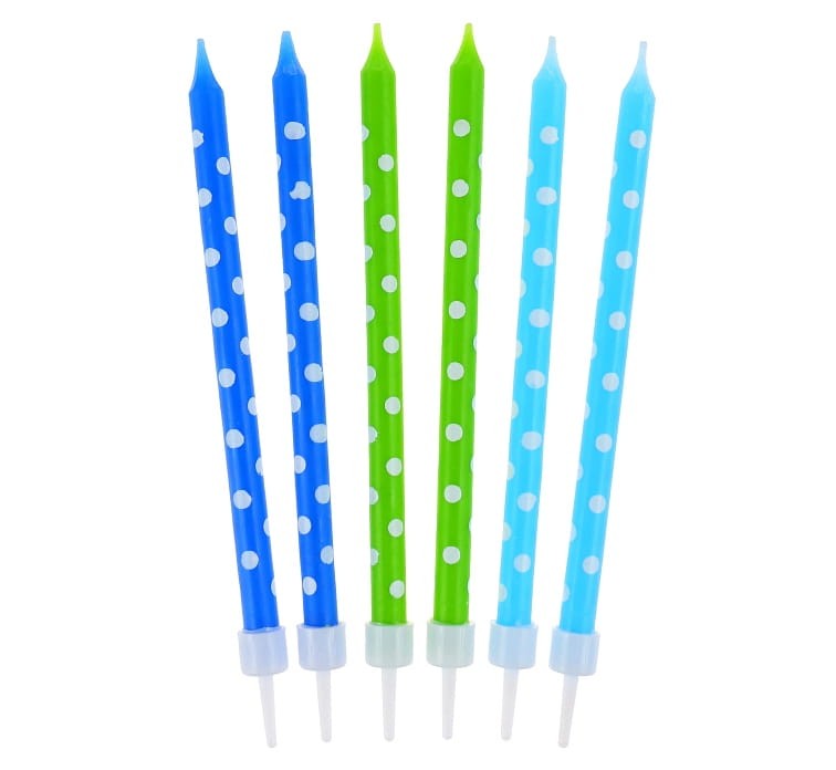 Świeczki urodzinowe niebieskie grochy dla chłopców 24 sztuki Godan
