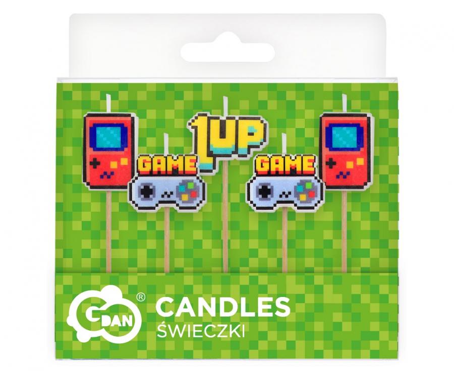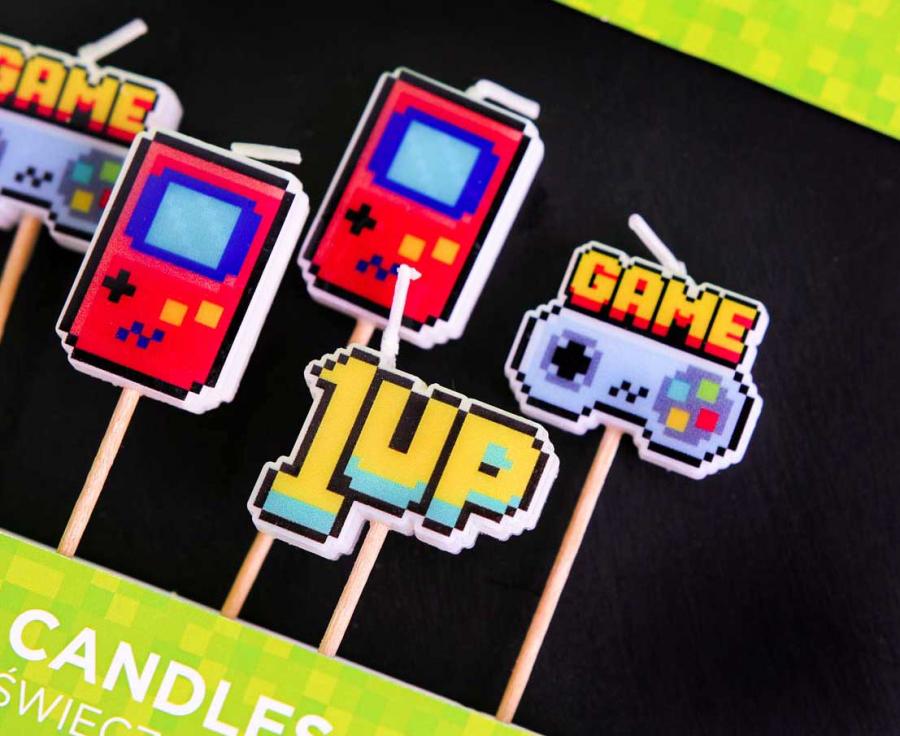 Świeczki urodzinowe pikery Game On 5 sztuk, GoDan