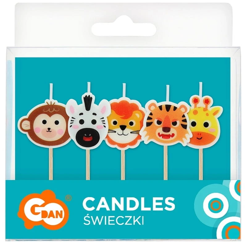 Świeczki urodzinowe pikery Safari Zwierzęta 5 sztuk, Godan