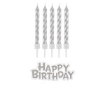 Świeczki urodzinowe srebrne Happy Birthday 16 sztuk B&C, GoDan