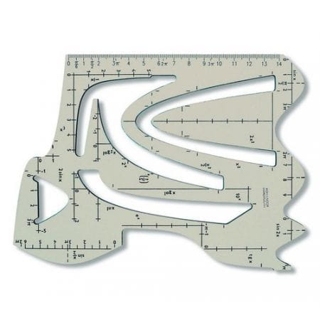 Szablon funkcji matematycznych wykonany jest z dymionego tworzywa sztucznego. Umożliwia rysowanie funkcji trygonometrycznych, paraboli, hiperboli oraz funkcji wykładniczych. Szablon zawiera także linijkę o długości 14 cm.