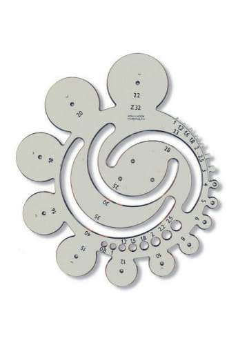 - Zawiera: wzory 32 łuków i zaokrągleń o średnicy od 10 do 40 mm i kół o średnicy od 08 do 25 mm