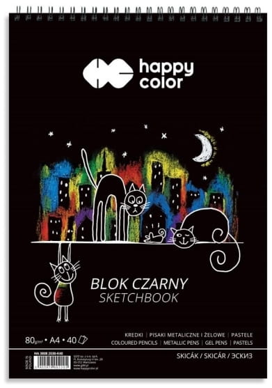 Szkicownik na spirali czarny A4 40ark. 80g KOTY, Happy Color